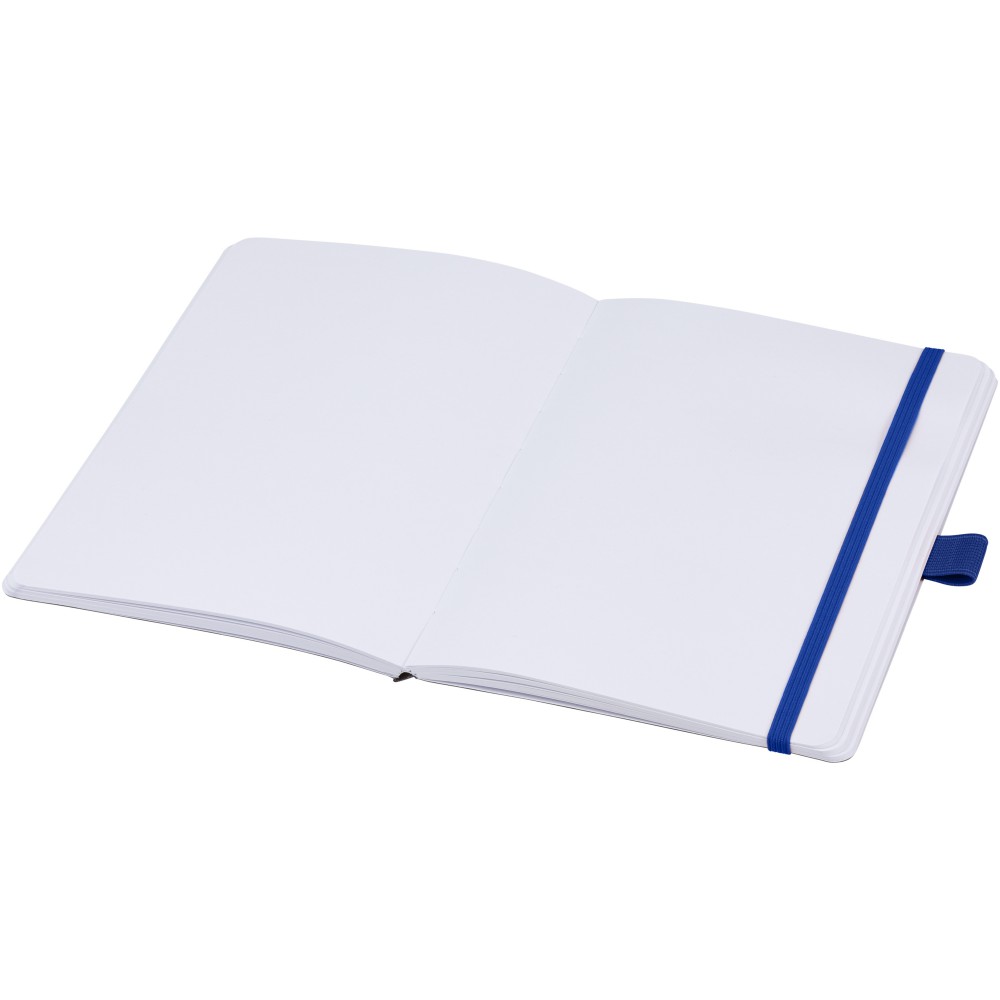 Jegyzetfüzet újrahasznosított vonalas lapokkal (70 g/m2), lekerekített sarkokkal, színes gumi záródással és az 107384-es tollszínhez illő tollhurokkal.