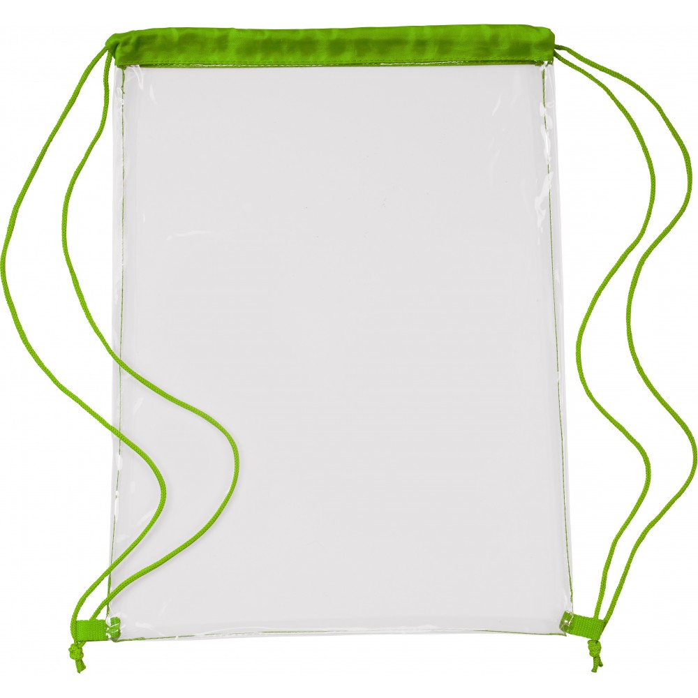 Átlátszó PVC tornazsák színes szegéllyel és összehúzó zsinórral.