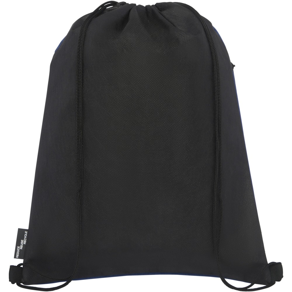 Tornazsák újrahasznosított RPET anyagból, fekete húzózsinórral, cipzáros zsebbel. Teherbírás 5 kg-ig. A termék színében kisebb eltérések lehetnek a festés, a szövés és a nyomtatás jellege miatt. 300D of újrahasznosított PET műanyag, újrahasznosított nemszőtt polipropilén, 80 g/m2.