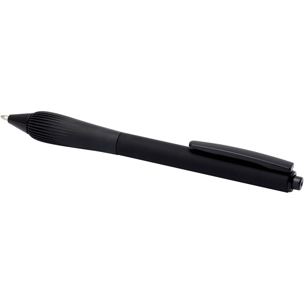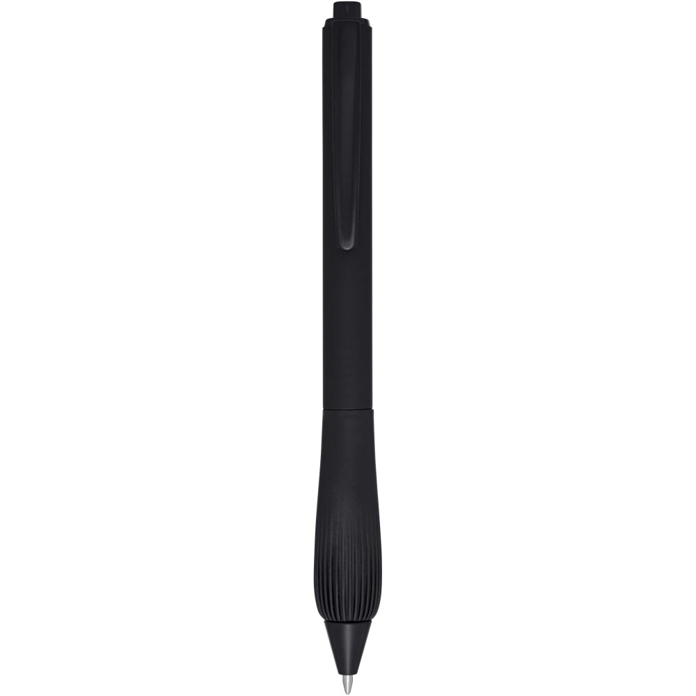 Újrahasznosított műanyag golyóstoll gumírozott tolltesttel és TPR anyagból készült fogórésszel. Fekete tollbetéttel. Írási hossz: 1000 méter. Hegyméret: 1,0 mm.