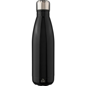 Újrahasznosított rozsdamentes acél, egyrétegű kulacs csavaros kupakkal. 304-es rozsdamentes acélból készült. Az újrahasznosított logó gravírozva van a kulacson. Egyenként barna kartondobozba csomagolva. Űrtartalom: 650 ml.