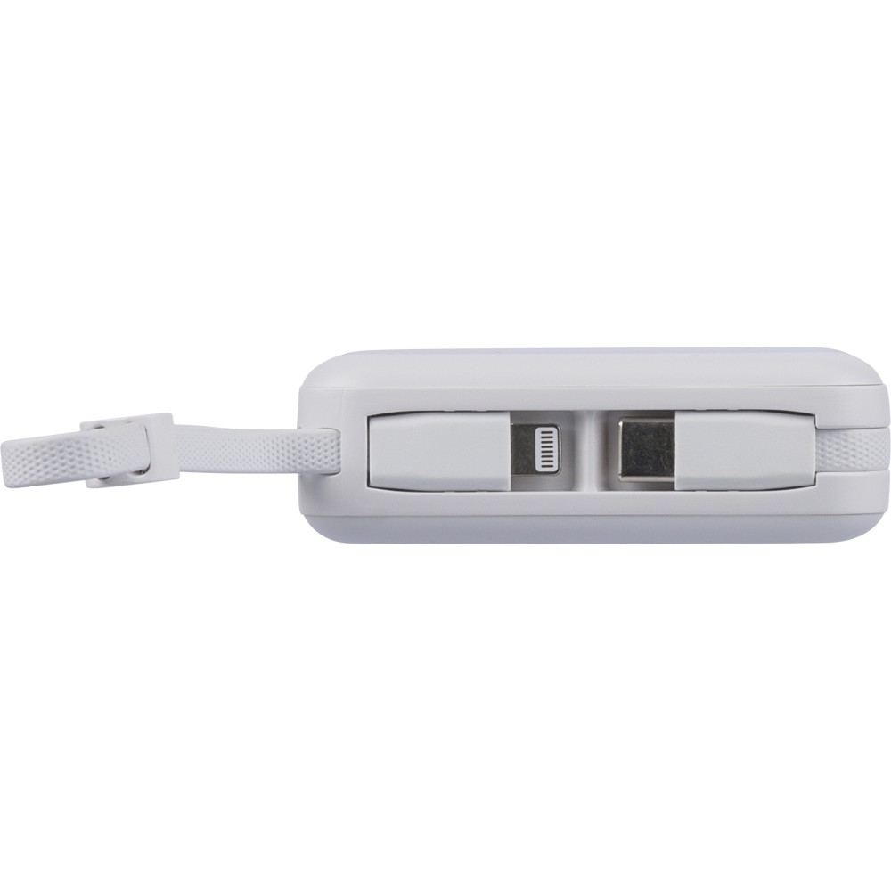Újrahasznosított ABS anyagból készült powerbank 10 000 mAh kapacitású lítiumion akkumulátorral és 22,5 W gyors töltési teljesítménnyel. Beépített TPE kábel Lightning és Type-C csatlakozóval, LED akkumulátorjelzővel, Type-C in/out és Type-A bemenettel. Beépített biztonsági védelmekkel. A hátoldalon gravírozott recycled (újrahasznosított) alapanyagra utaló logó található. Selyempapírral bélelt barna kartondobozba csomagolva.