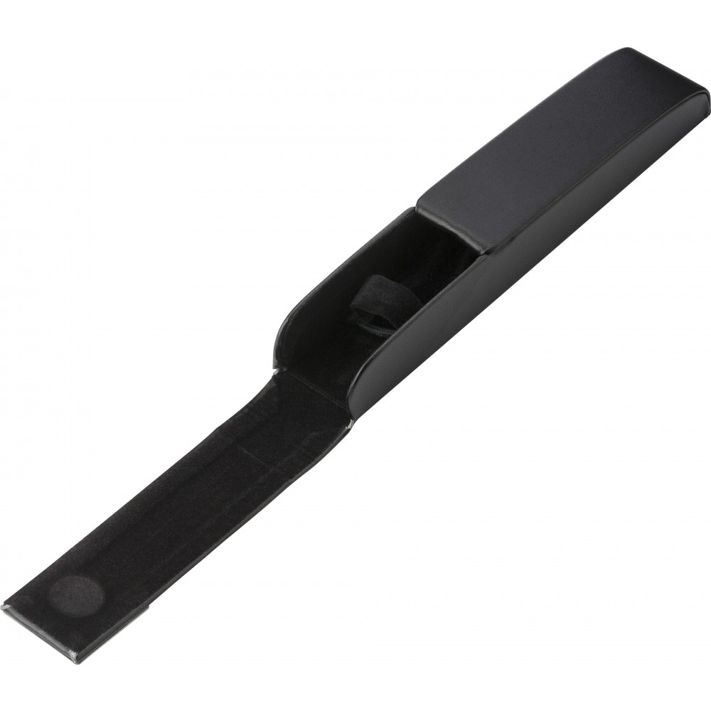 Igényes kivitelezésű tolltartó egy toll számára, fekete fényes emblémázható felülettel. Belül bársonyos bélés, mágneses záródás. Az emblémázható felület mérete: 2,6 x 2,6 cm. PU.