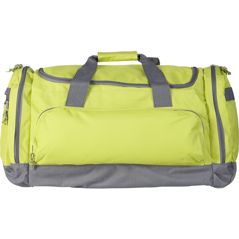 Utazótáska nagy cipzárral, oldal- és első zsebbel. 600D poliészter.